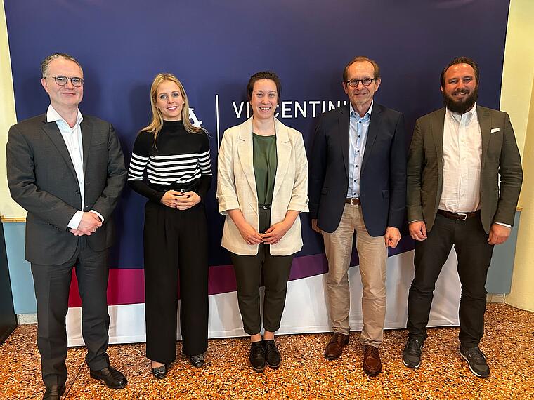 v.l.n.r.: Prof. Dr. Klaus Markstaller, Ärztl. Direktor Universitätsklinikum Augsburg, Lesley Spaedtke, Geschäftsführerin Klinik Vincentinum, Dr. Martina Menacher, Oberärztin Klinik Vincentinum, Univ.-Prof. Dr. Markus Naumann, Chefarzt Klinik Vincentinum und Universitätsklinikum Augsburg, Michael Kneis, Geschäftsführender Direktor Artemed