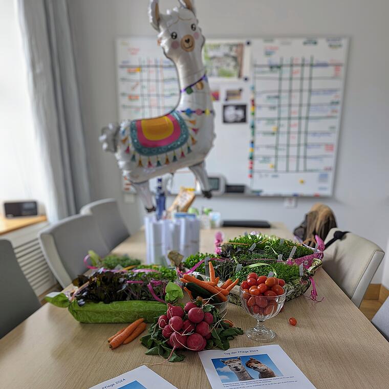 Zum Tag der Pflege möchten wir uns bei unseren Pflegekräften bedanken - in diesem Jahr in Form eines Gutscheins für eine gemeinsame Alpakawanderung mit anschließendem Picknick im Grünen. Ein großes Dankeschön geht auch an dieser Stelle an alle Pflegekräfte, die sich täglich so toll um unsere Patientinnen und Patienten kümmern. Ihr seid spitze!